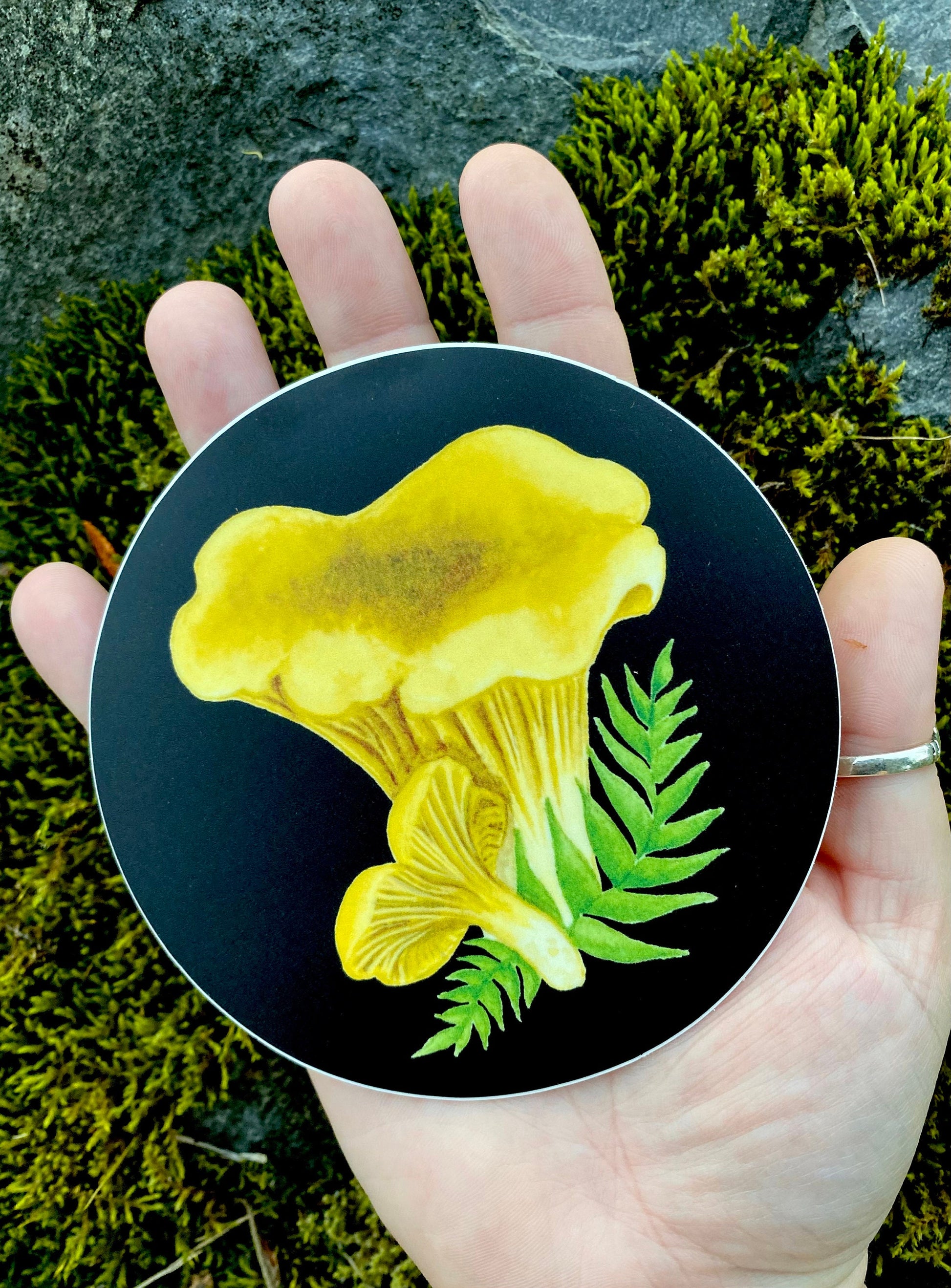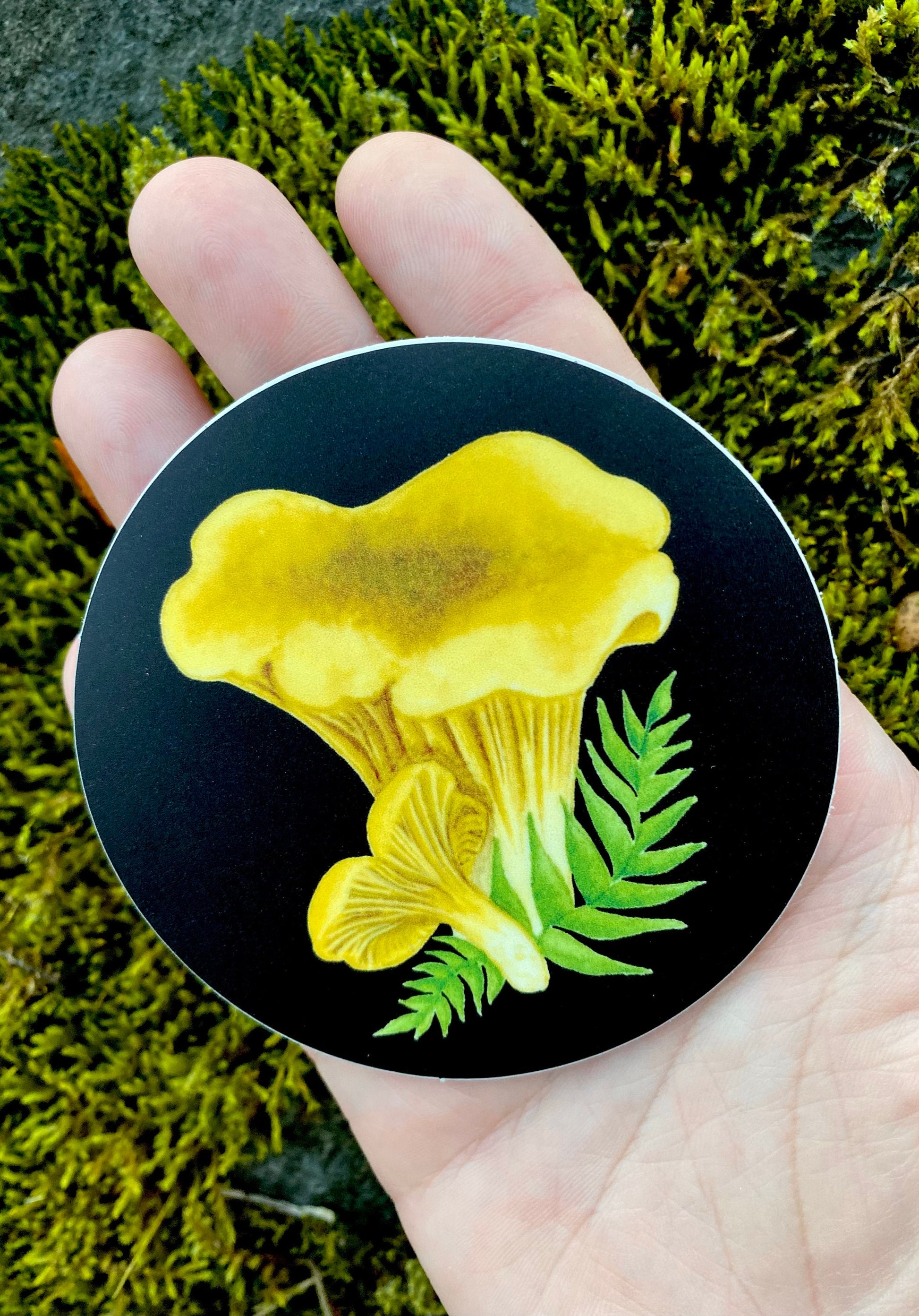 If you're a fan of mushrooms, then you need this Chanterelle Mushroom vinyl sticker!